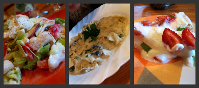 Väike meenutus Mailiisu õhtusöögist, mis toimus juuli alguses. Eelroog- fetasalat, pearoog- ise tehtud pasta mingi kanaga jne ja siis magustoit- Pavlova tort....seeee oli unelmate magustoit. Terve õhtusöök oli üks maitsete ja nadingute kompottt. Loodan, et kõik talle max punkte ei pannnud.