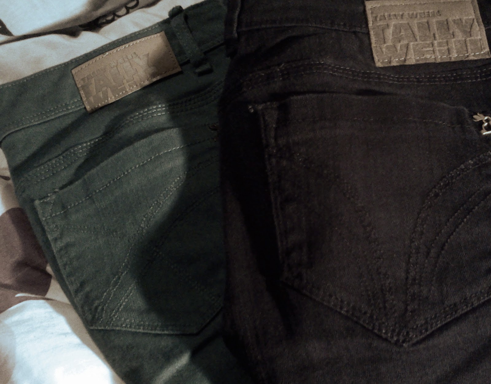 Ostsin siis vaid Tallyst kaks paari püksikesi.. Ma ei tea miks, aga viimasel ajal mu püksipaarid vaid sealt pärinevadki. Seal hea suur valik igat värvi ja puha. :D Samas kui ikka selliseid tavalisi teksaseid otsin, siis pole see küll just favoriitkoht.. siis on Mango vist. NO VAHI KUS INFOOOO!!!! teid kindlasti huvitas