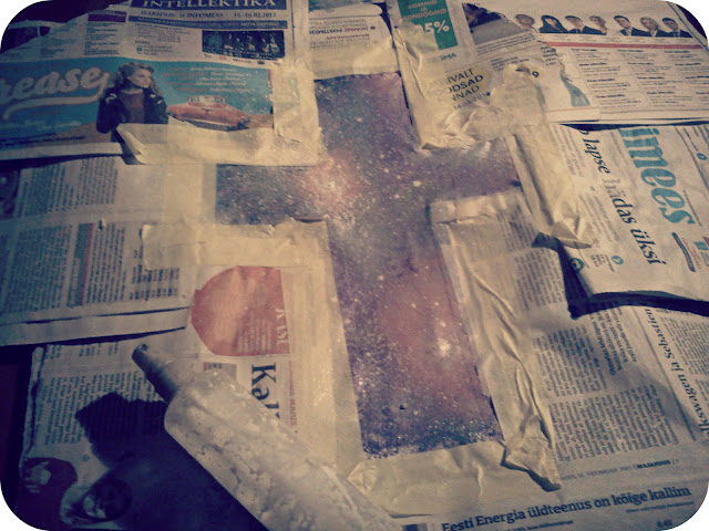 Seejärel värvi see valge värviga.. ilmselt kui sa näiteks valgele särgile seda kõike teed, pole väga mõtet seda teha. Kuna ma perfektset pintslit ei leidnud ja väga ei viitsinud otsida kah, võtsin mingi juuksevärvi pintsli... aga ega lõpuks sellega midagi ei juhtunudki, sain puhtaks ja puha.. LAHE, ET MU KASS SINNA VÄRVI KESKELE ASTUS :D Ma üle ka ei värvinud, mõtlesin, et äkki ei jää näha, aga vot kui praegu üles kerid ja lõpptulemuse pilti vaatad korralikult, siis tegelikult seda on ikka näha veits :D