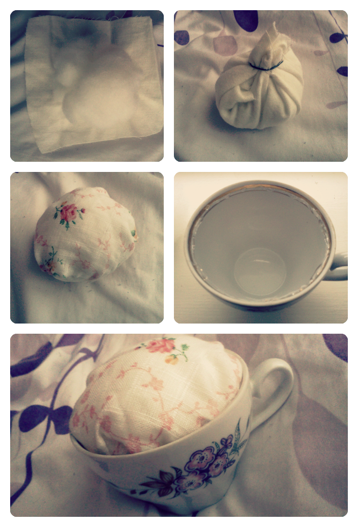 Selleks lähebki siis vaja tassi, vatti, veidike kangast ning liimi.. ja ühte väikest kummikest..