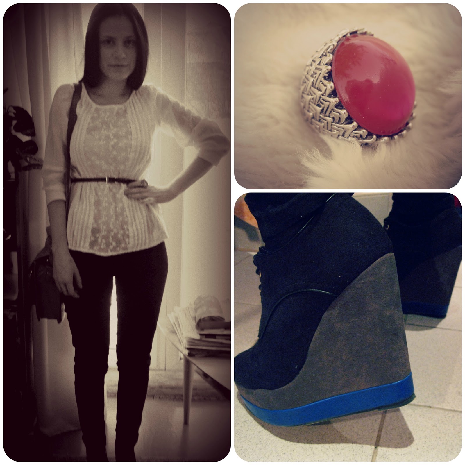 Täna ma siis tuvustan teile oma pisikesi nunnusid, kelle seltsis ma täna esta proovieksamit tegin. Tegelikult ostis emme need kingad endale, kuid ma lihtsalt röövisin need alatult. Küll on alles tore, kui su emme ei osta endale selliseid riideid ja kingi, mida "normaaalsed" õpetajad kannavad. Pildi pealt tunduvad need kingad üsna kõrged ja eks nad annagi mingi 15 cm kanti pikkust juurde, kuid kuna nad on platvormid ning veel kinnised, siis on nendega kõndimine veel mugavam kui näiteks madalate jalanõudega..seega koolis käimiseks väga head. Ma täiega vihkan madalaid jalanõusid..ma kohe ei saa nendega kõndides elada. Ja kui alguses ma kartsin, et vb on treppide peal nendega paha kõndida, sest tald on päris väike, siis tegelikult oli täiega tavaline ja mugav. Ühesõnaga... sellest ma siis täna tahtsingi rääkida. Ja oii kuidas ma seda valget pluusi armastan, mis ma täna kandsin..lihtsalt ülinummikas.. pärit siis HM-ist, kui keegi tunneb huvi.
