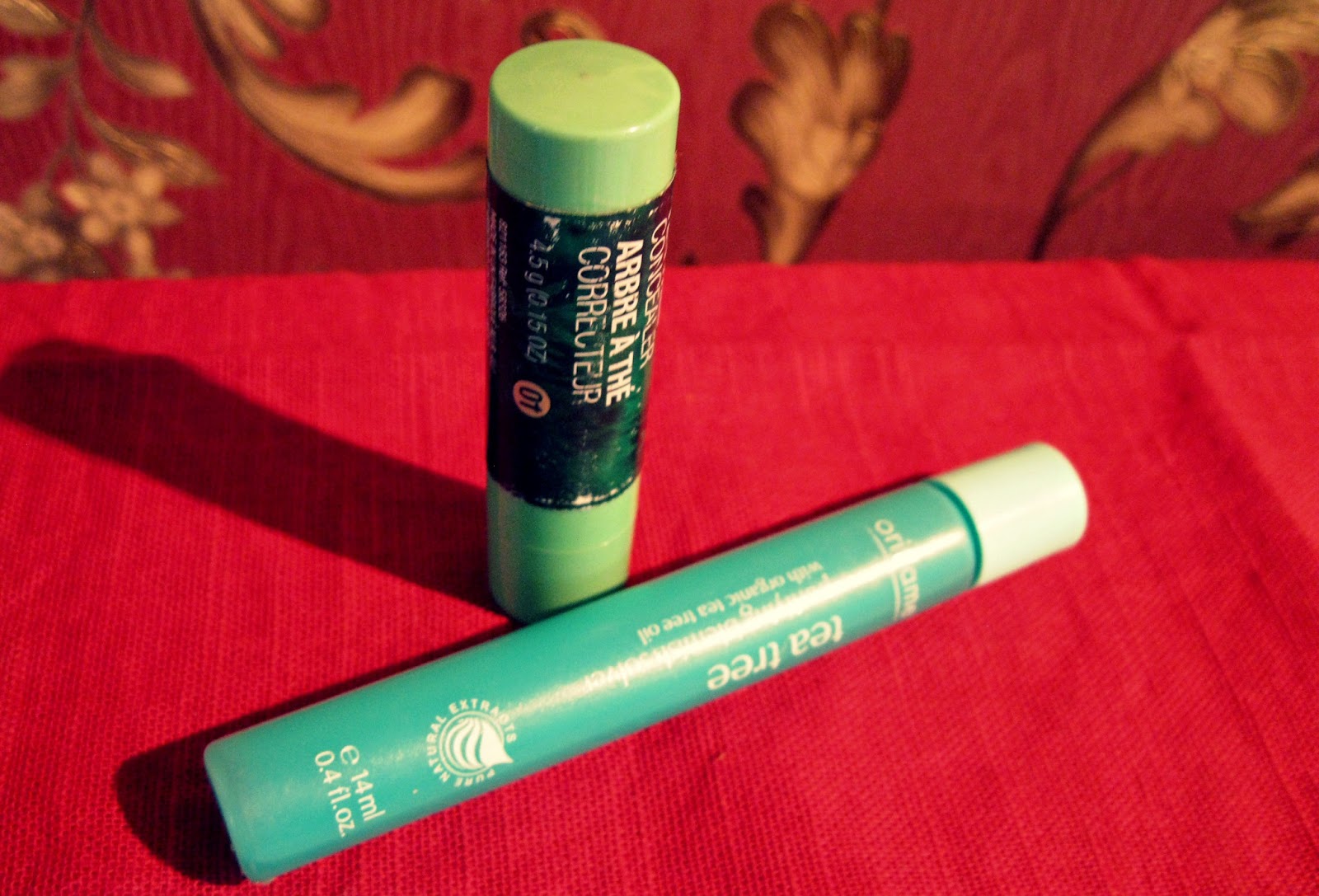 Kui harvadel juhtudel mul tulevad vinnid, siis need on SOS-abivahendid. Teepuuõliga The Body Shopi peitepulk, mis peidab ja samal ajal kuivatab punni ja teepuu... vedelik, mis suudab punni üleöö ära kuivatada. Lõhn pole küll väga meeldiv, aga töötavad!