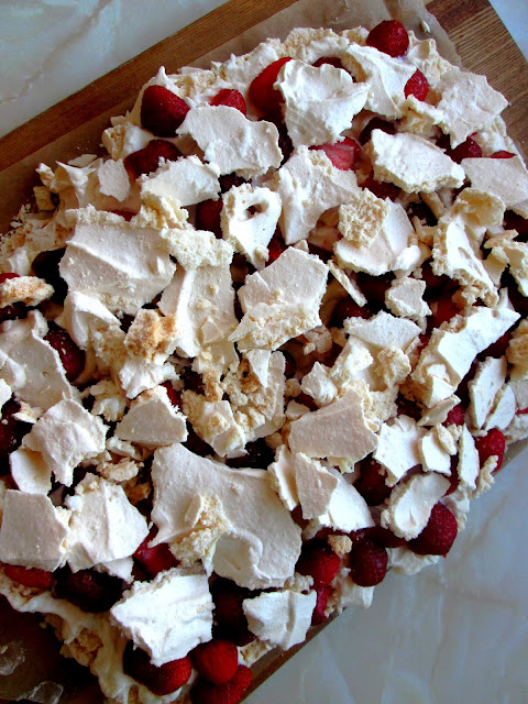 Mina ei kasutanud veiniäädikat ja maisitärklist, sest mul polnud neid sel hetkel kodus. Kui besee oli jahtunud ja kreem valmis, võtsin ma noaga selle ülemise osa ära.. (ma ei oska seletada..)nagu tegin ta pooleks..et ta jääks nagu kihina. Nüüd panin toorjuustuvahu ja maasikad alumise osa peale ja siis nüüd panin selle ülemise osa, mis ma ära võtsin, maasikatele ja vahule peale. Piltide pealt on vast aru saada..
