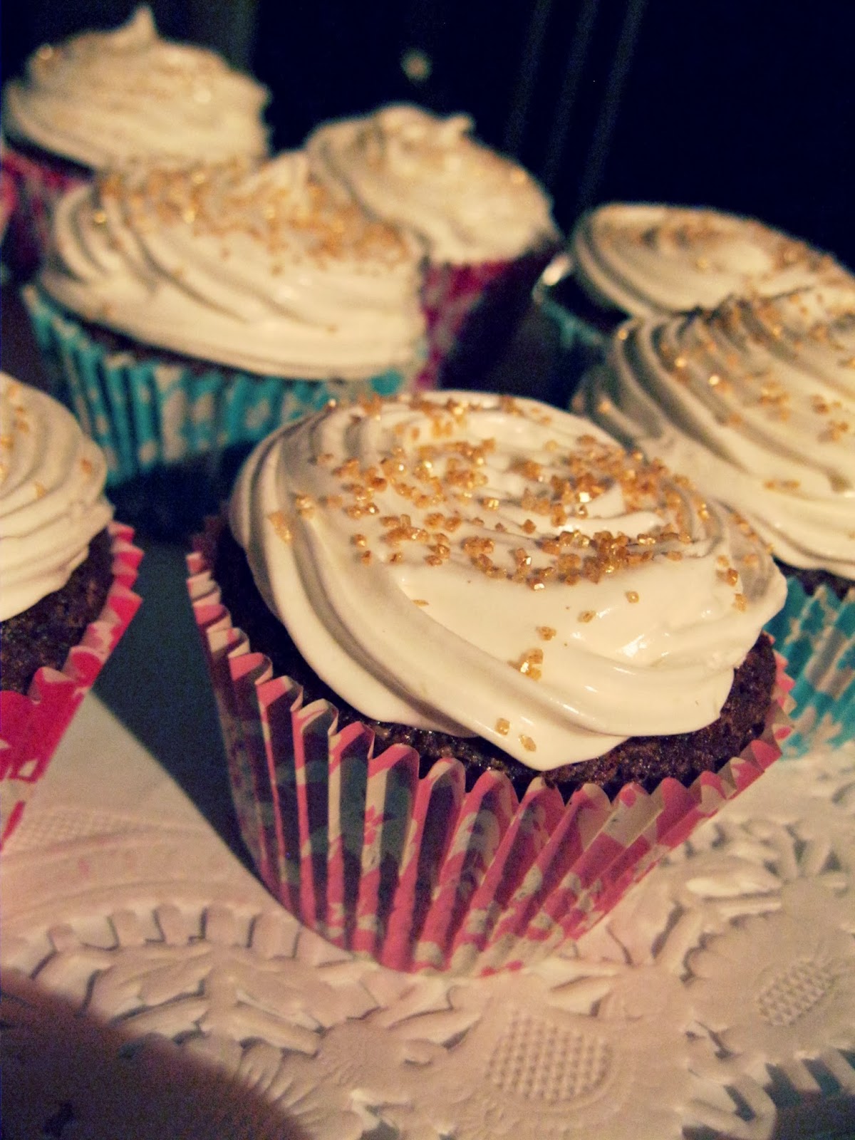Kui nüüd päris aus olla, siis hakkasime me täna cupcake tegema just sellepärast, et seda kuldset kaunistust peale panna. Sain selle Triinult koos teiste toredate küpsetamisasjadega jõuludeks ning see muudab cupcake'id tõesti palju kaunimateks. See on peaaegu nagu suhkur, ainult kuldne ja sädelev. Täpselt midagi mulle... magus ja pilku püüdev! Tegelikult võid sa kaunistamiseks kasutada ükskõik mida. Marju, šokolaadi, küpsisepuru või koerakrõbinaid...okei koeratoitu ärge parem kasutage, muidu avastate homme hommikul, et teil on saba ning te haugute!