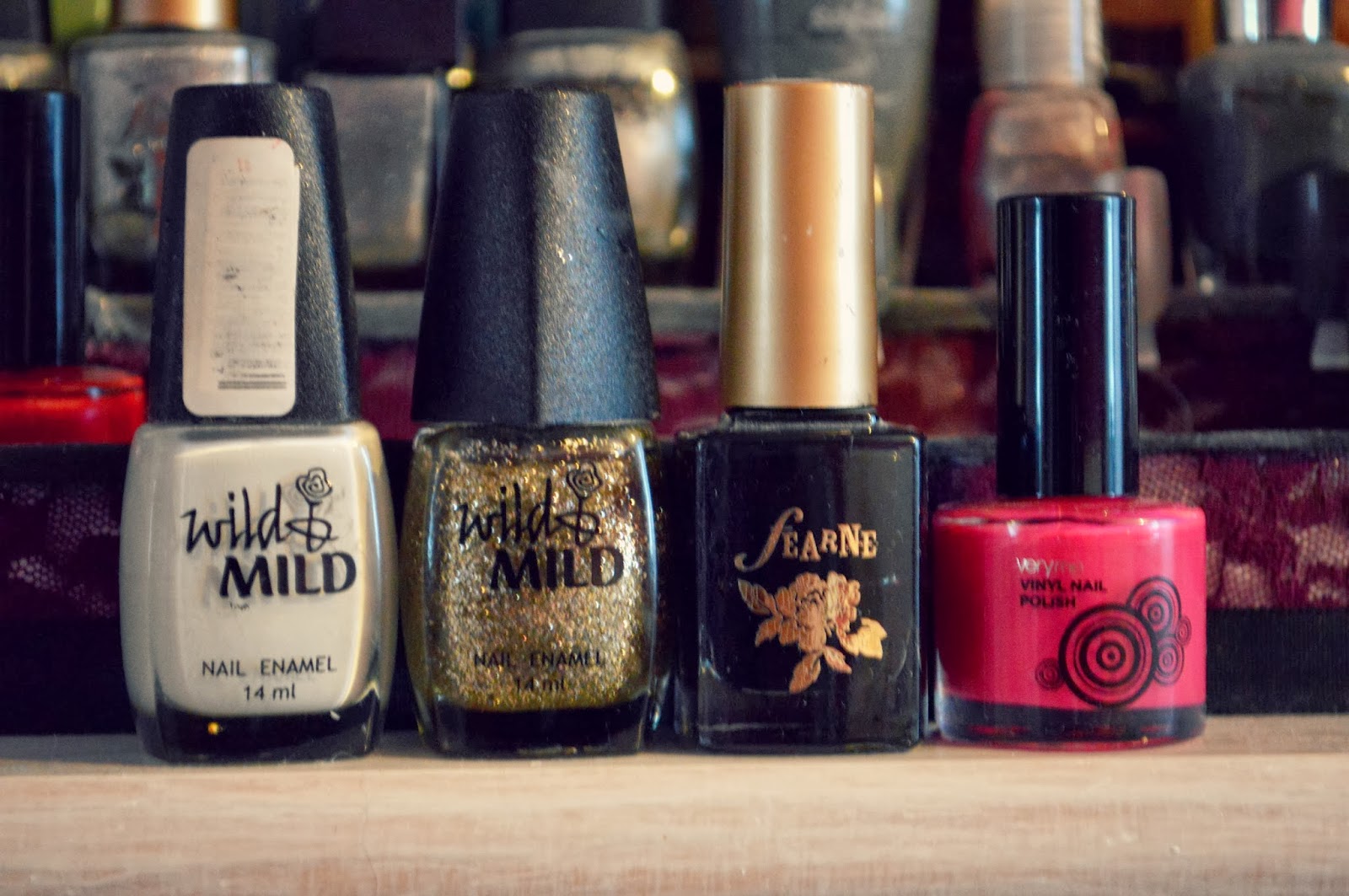 Kasutasin selliseid toredaid lakke. Värvisin kõik küüned peale nimetissõrme ja sõrmuse sõrme (ise mõtlesin välja, ma tegelt ei tea mis selle näpu nimi on) roosaks. Nimetissõrmed tegin valgeks ning teised kuldseks.