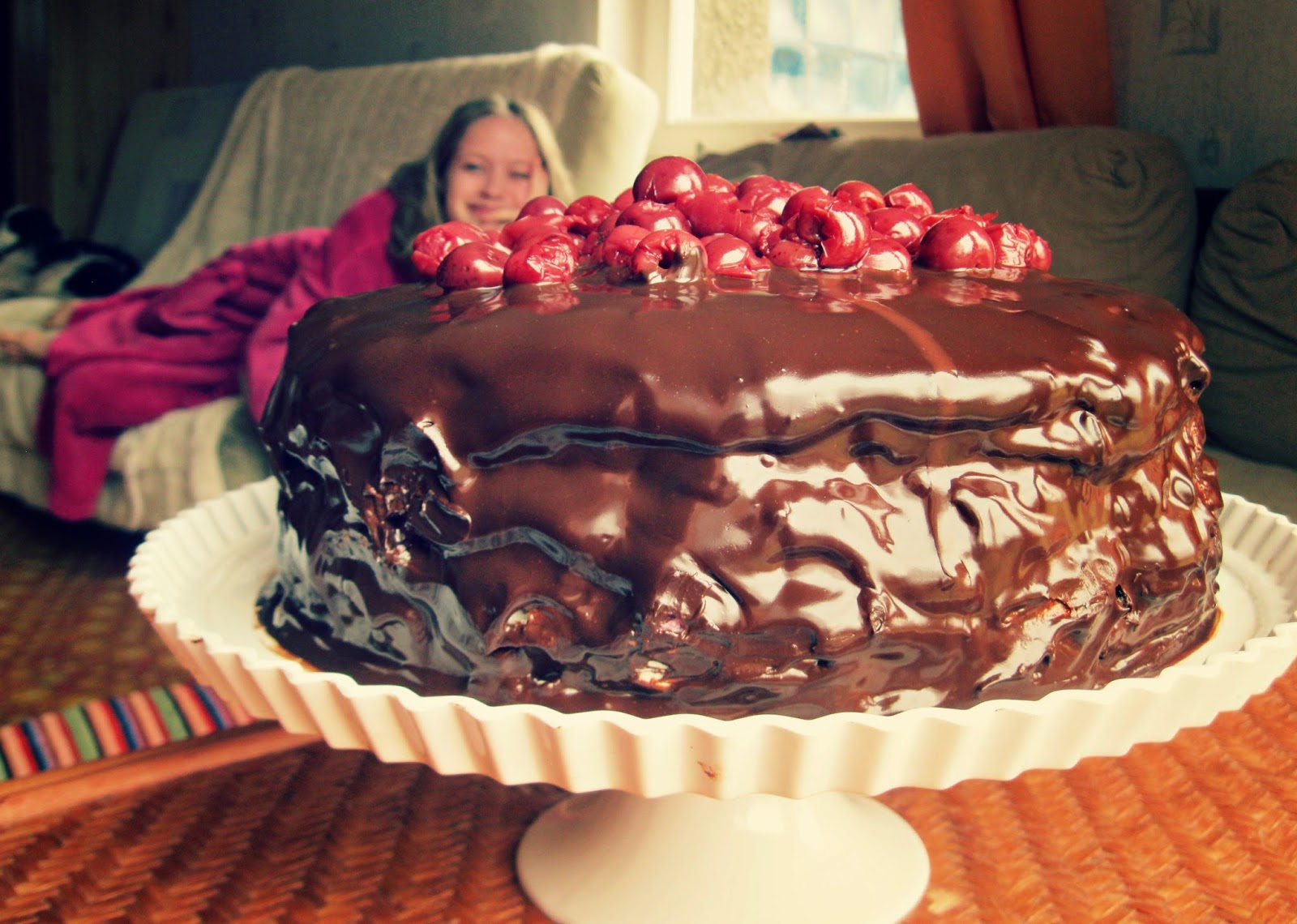 Armas Maarja palus, et ma teeksin ta vanaema sünnipäevapeoks ühe suure tordi. Algul ma küll natuke kõhklesin, sest ma ei ole kellegile niimoodi päris tellimuse peale küpsetanud, kuid tegelikult polnud asi üldse nii hull, kui ma ette kujutasin. Väikesi viperusi tuli küll ette (loe: poetasin öösel kell 2 paar pisarat, sest üks tordipõhi lagunes ära), aga lõppkokkuvõttes tuli minu arvates täitsa kelmikas tort välja. Maarja palus, et küpsetaksin Talle samasuguse tordi nagu ma suvel enda sünnipäevaks tegin... (retsepti leiad SIIT!) Kaht torti eristab ainult see, et seekord kasutasin ma vaarikate asemel kirsse ning pealispind on kaetud šokolaadiga.
