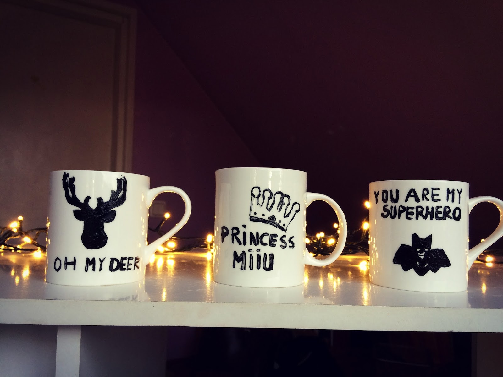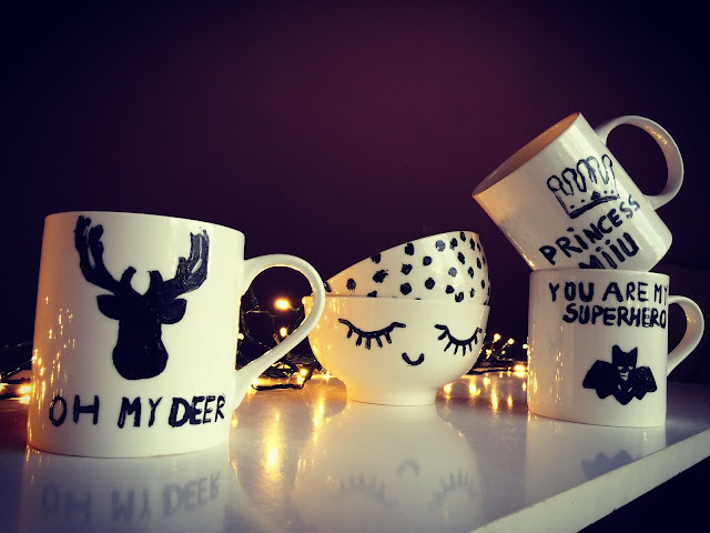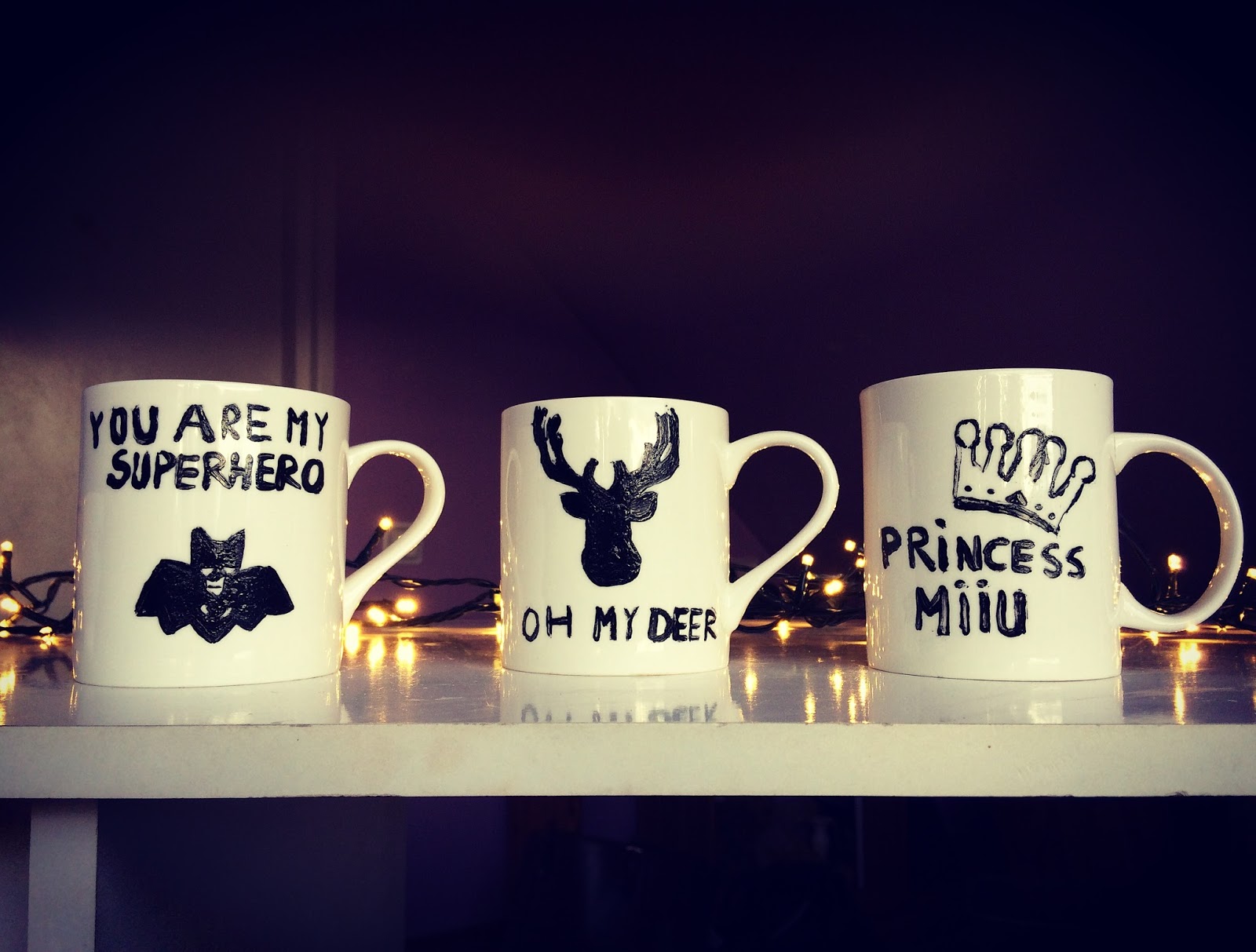 Kui keegi tahab nüüd sarnaselt mulle oma vangistatud kunstnikuhinge välja lasta ja hakata tasse maailma, siis väike vihje teile. Maximas on müügil sellised valged tassid ja kausid kõigest ühe euro ja kahekümne sendi eest ja portselanvärvi saab kunstipoodidest. Vähemalt üht pintslit läheb ka vaja!