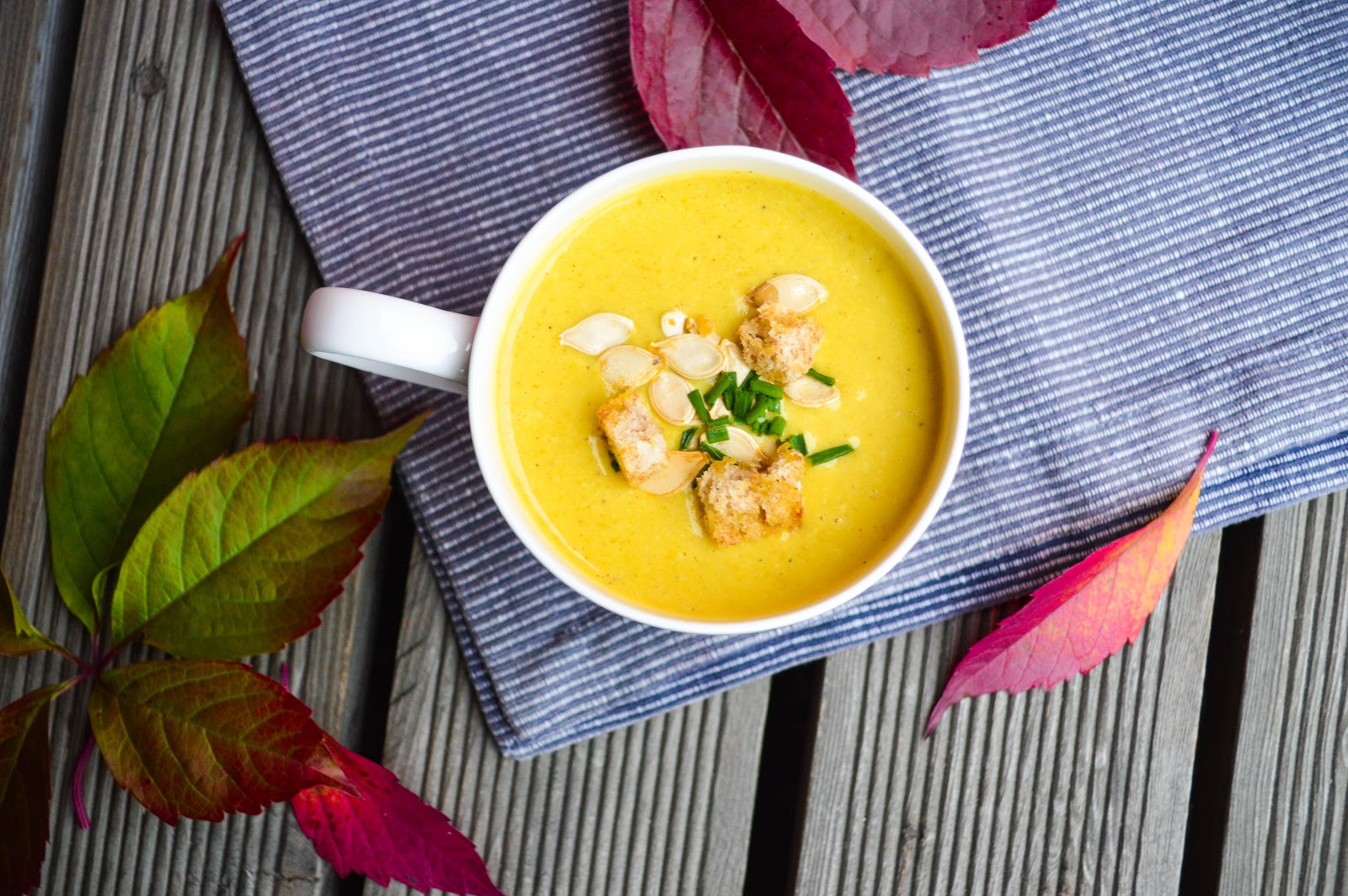 Kõrvitsasupp karri ja kahe erineva juustuga